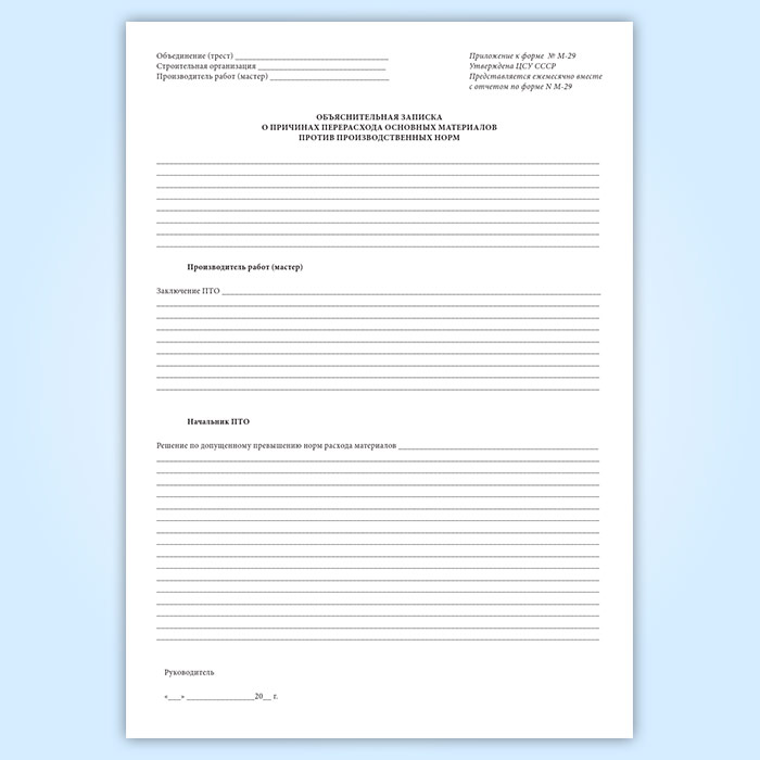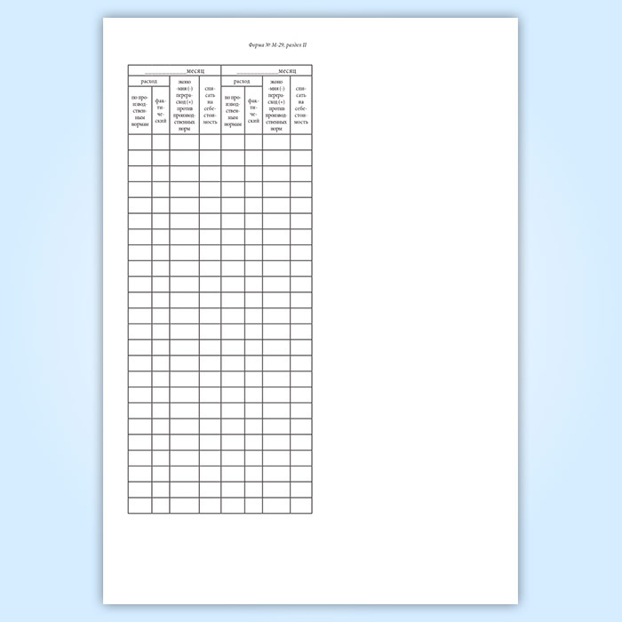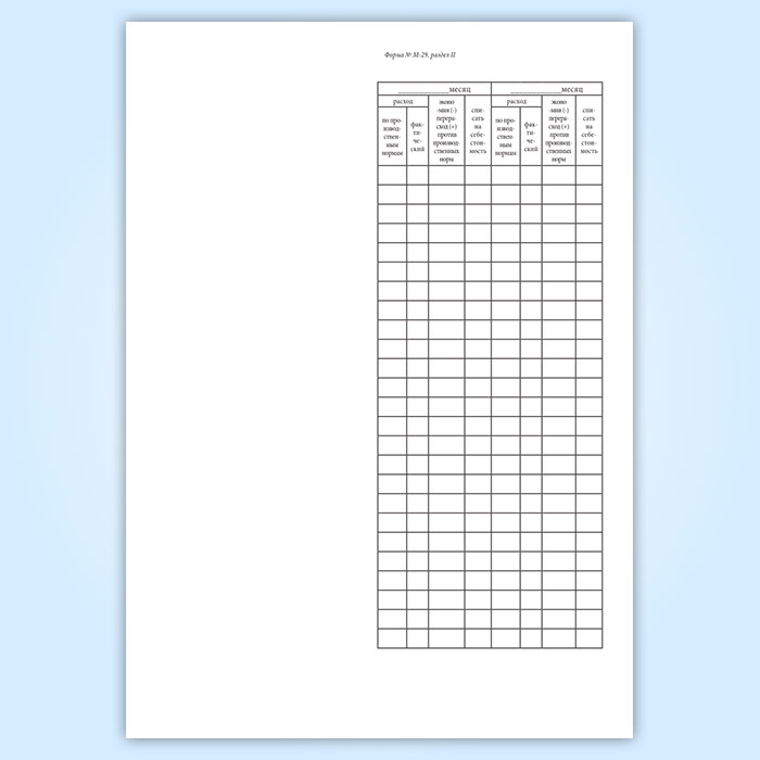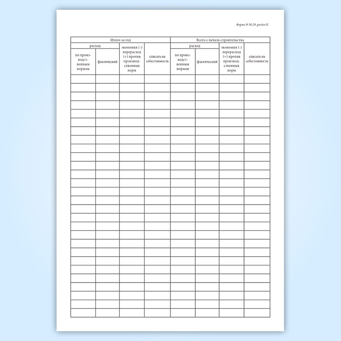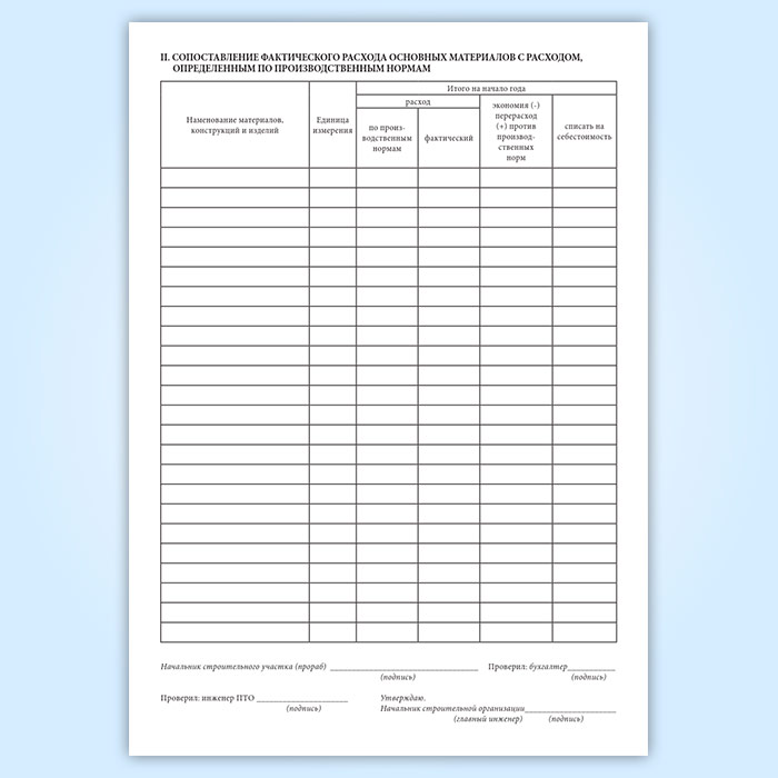 Отчет о расходе основных материалов в строительстве в сопоставлении с расходом, определенным по производственным нормам (форма М-29) в Нижнекамске купить