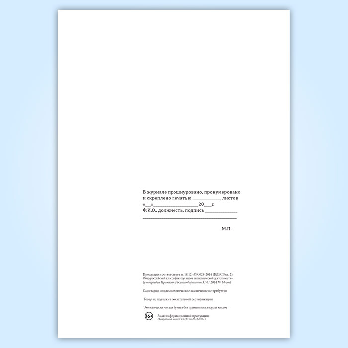Вы получаете печатную продукцию прошнурованной и c местом для вашей печати в соответствии с действующими нормативными документами: