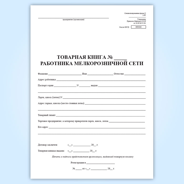 Товарная книга работника мелкорозничной сети. Специализированная (форма № 1-РТ) в Нижнекамске купить