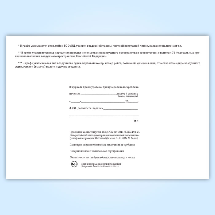 Журнал учета нарушений порядка использования воздушного пространства в Нижнекамске купить