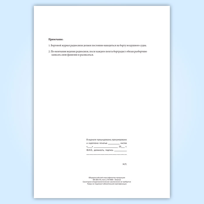 Бортовой журнал радиосвязи воздушного судна авиапредприятия в Нижнекамске купить