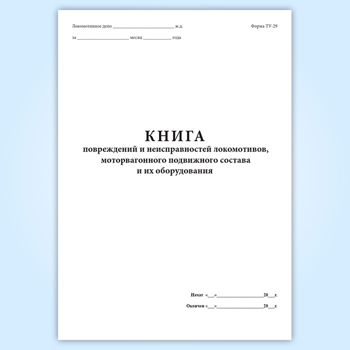 Книга повреждений и неисправностей локомотивов, моторвагонного подвижного состава и их оборудования (форма ТУ-29) в Нижнекамске купить