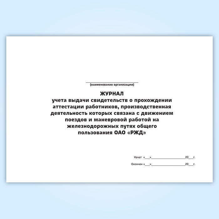 Журнал учета выдачи свидетельств о прохождении аттестации работников, производственная деятельность которых связана с движением поездов и маневровой работой на железнодорожных путях общего пользования ОАО «РЖД» в Нижнекамске купить
