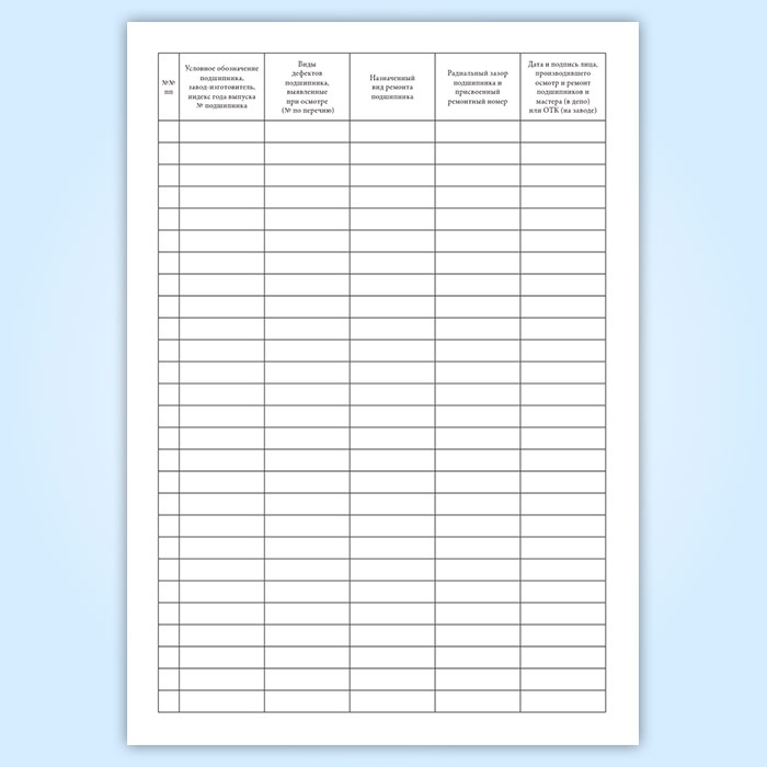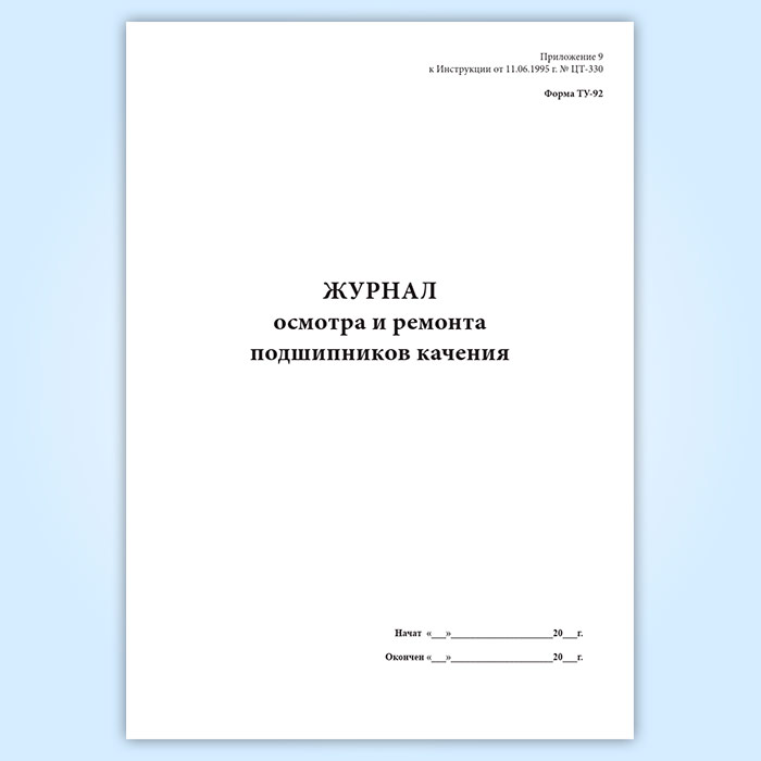 Журнал осмотра и ремонта подшипников качения (форма ТУ-92) в Нижнекамске купить