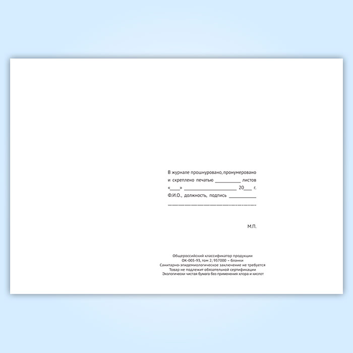 Вы получаете печатную продукцию прошнурованной и c местом для вашей печати в соответствии с действующими нормативными документами: