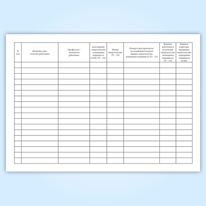 Журнал выдачи и регистрации удостоверений помощника машиниста ССПС (форма ТУ-153) в Нижнекамске купить