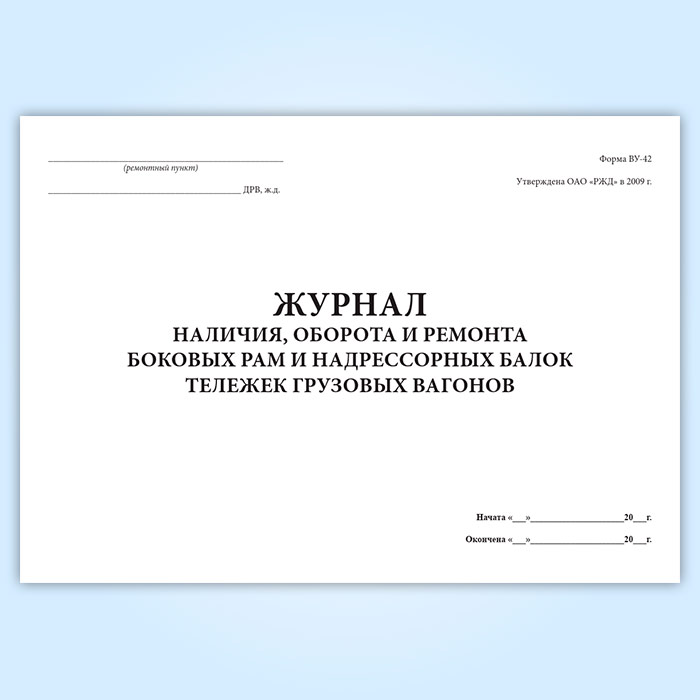 Журнал учета наличия, оборот и ремонт боковых рам и надрессорных балок тележек грузовых вагонов (форма ВУ-42) в Нижнекамске купить