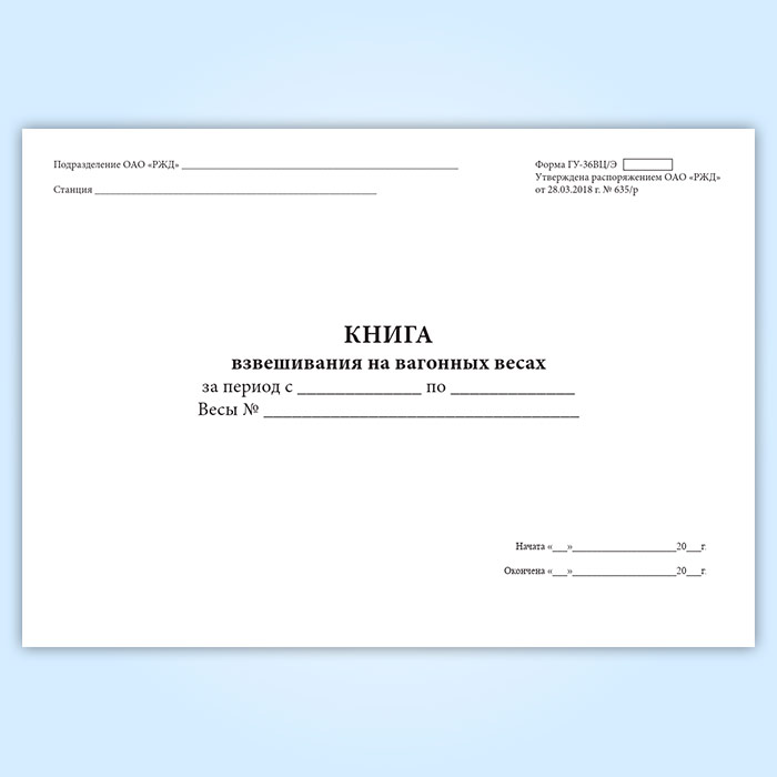 Книга взвешивания на вагонных весах (форма ГУ-36ВЦ/Э) в Нижнекамске купить