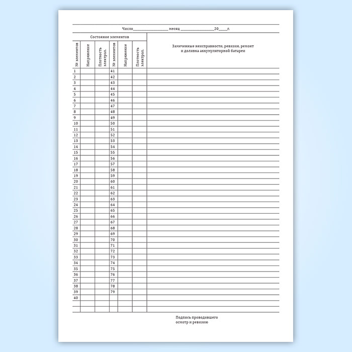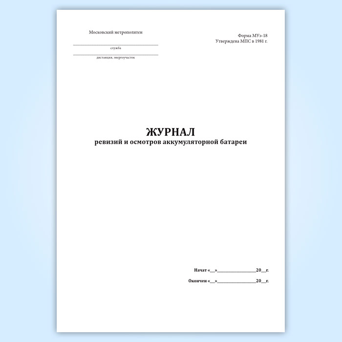 Журнал ревизий и осмотров аккумуляторной батареи (форма МУэ-18) в Нижнекамске купить
