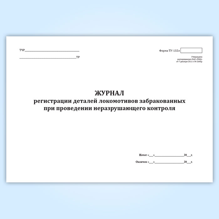Журнал регистрации деталей локомотивов, забракованных при проведении неразрушающего контроля (форма ТУ-132л) в Нижнекамске купить