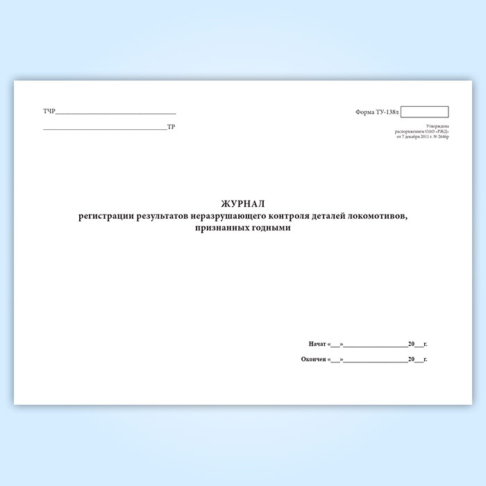Журнал регистрации результатов неразрушающего контроля деталей локомотивов, признанных годными (форма ТУ-138л) в Нижнекамске купить