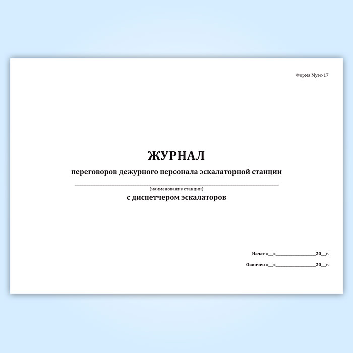 Журнал переговоров дежурного персонала эскалаторной станции с диспетчером эскалаторов (форма Муэс-17) в Нижнекамске купить