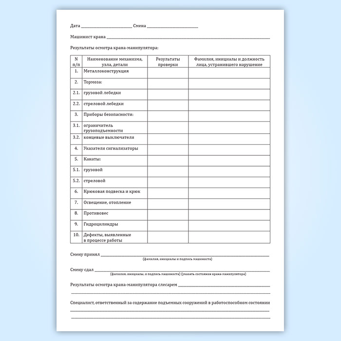 Вахтенный журнал машиниста грузоподъемного крана-манипулятора в Нижнекамске купить