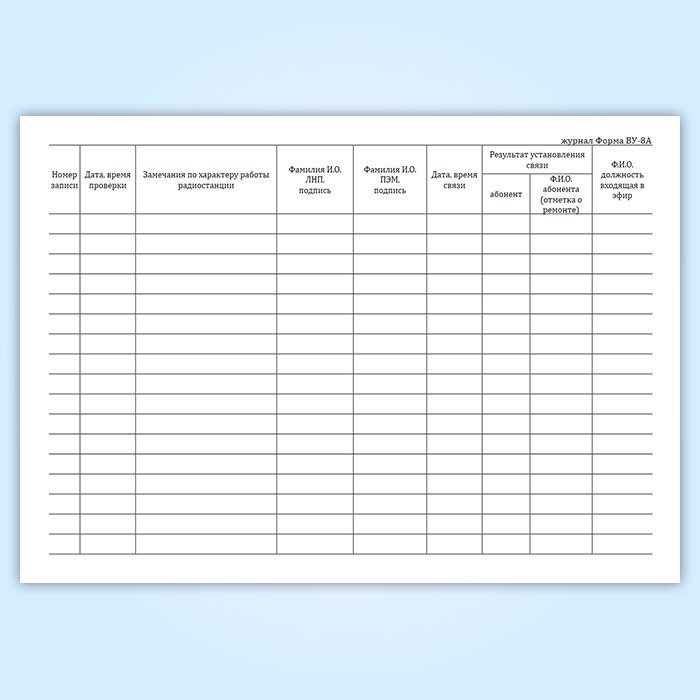 Журнал работы поездной радиостанции (форма ВУ-8А) в Нижнекамске купить