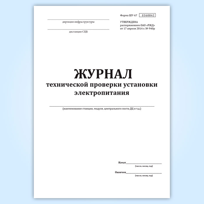 Журнал технической проверки установки электропитания (форма ШУ-67) в Нижнекамске купить