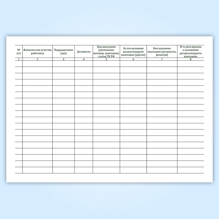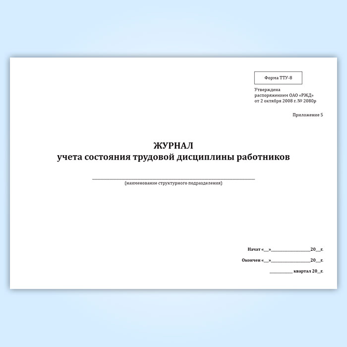 Журнал учета состояния трудовой дисциплины работников (форма ТТУ-8) в Нижнекамске купить