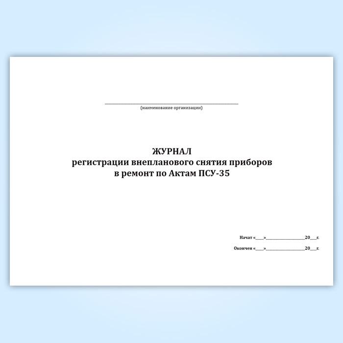 Журнал регистрации внепланового снятия приборов в ремонт по Актам ПСУ-35 в Нижнекамске купить