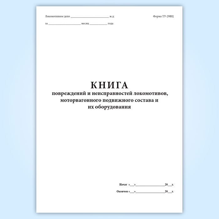 Книга повреждений и неисправностей локомотивов, моторвагонного подвижного состава и их оборудования (форма ТУ-29ВЦ) в Нижнекамске купить