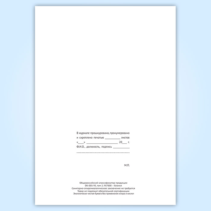 Вы получаете печатную продукцию прошнурованной и c местом для вашей печати в соответствии с действующими нормативными документами: