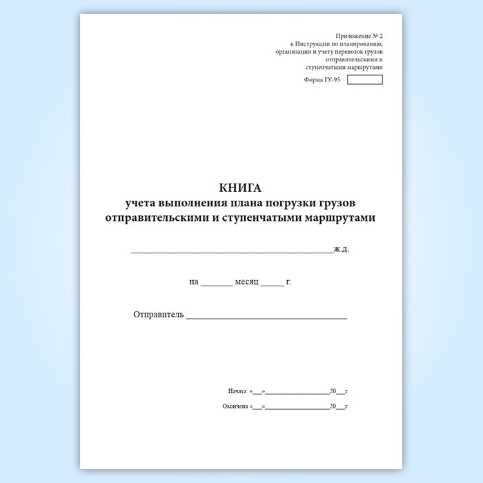 Книга учета выполнения плана погрузки грузов отправительскими и ступенчатыми маршрутами (форма ГУ-95) в Нижнекамске купить