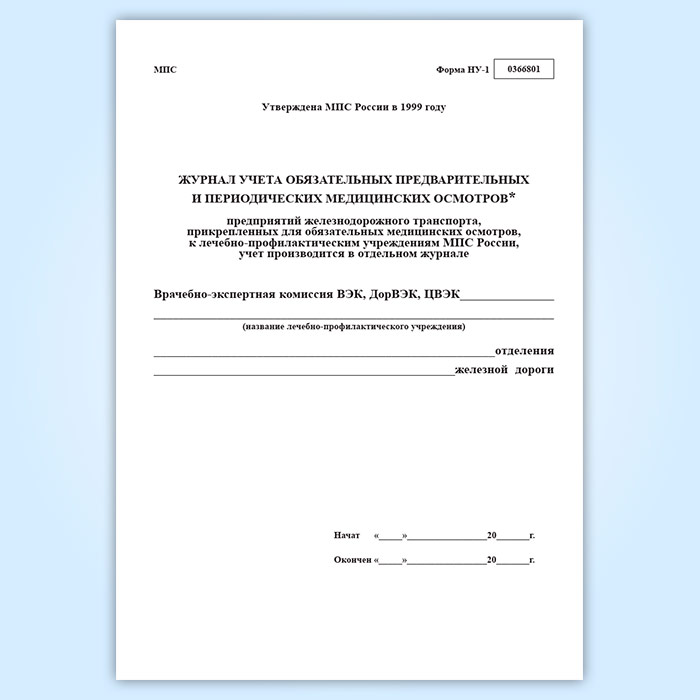 Журнал учета обязательных предварительных и периодических медицинских осмотров (форма НУ-1) в Нижнекамске купить