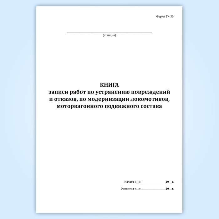 Книга записи работ по устранению повреждений и отказов, по модернизации локомотивов, моторвагонного подвижного состава (форма ТУ-30) в Нижнекамске купить
