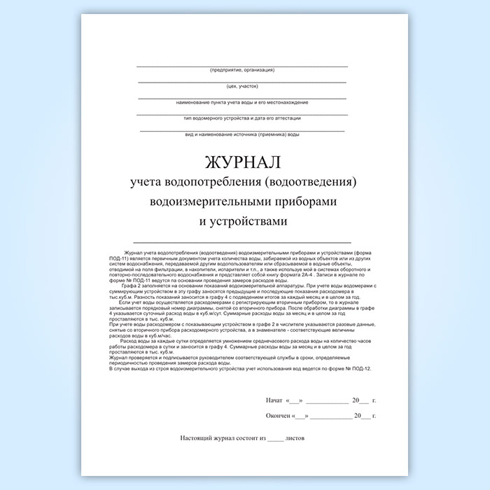 Журнал учета водопотребления (водоотведения) водоизмерительными приборами и устройствами (форма ПОД-11) в Нижнекамске купить