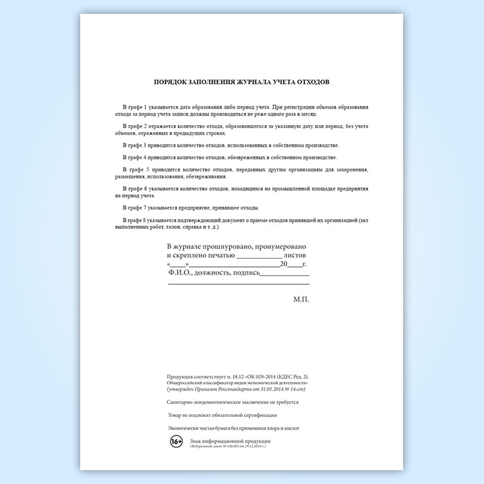 Журнал первичного учета отходов в Нижнекамске купить