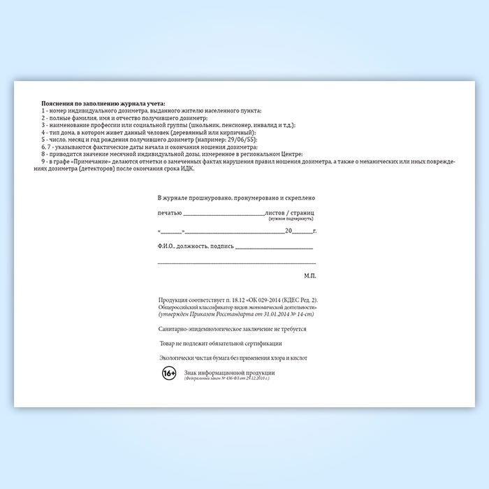 Журнал учета индивидуального дозиметрического контроля внешнего гамма-излучения в Нижнекамске купить