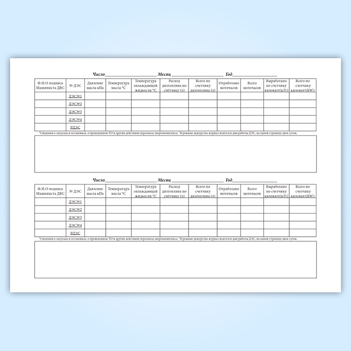 Вахтовый журнал машиниста ДВС по учету работы ДЭС в Нижнекамске купить