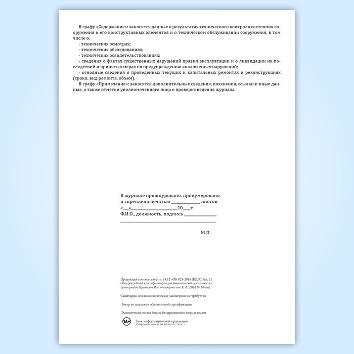 Технический журнал по эксплуатации гидротехнического сооружения в Нижнекамске купить