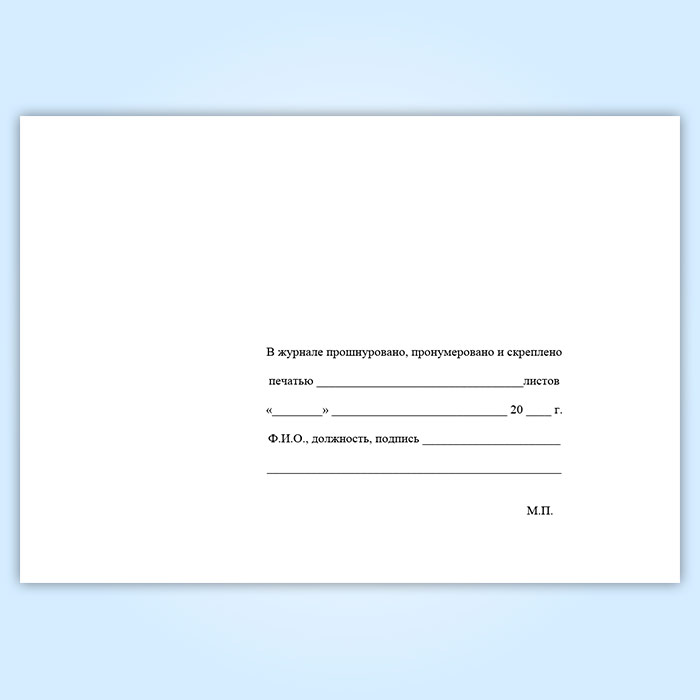Вы получаете печатную продукцию прошнурованной и c местом для вашей печати в соответствии с действующими нормативными документами: