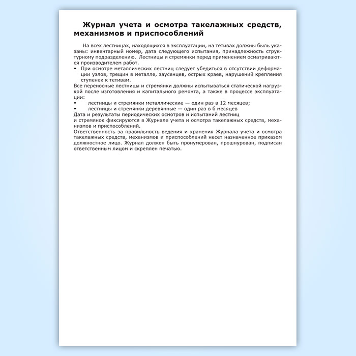 Журнал учета и осмотра такелажных средств, механизмов и приспособлений в Нижнекамске купить