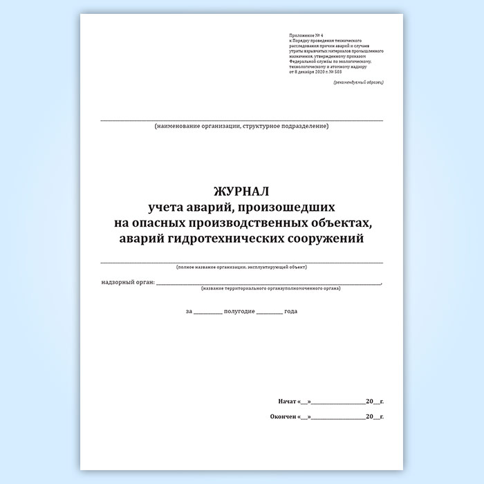 Журнал учета аварий, происшедших на опасных производственных объектах, объектах энергетики и гидросооружениях в Нижнекамске купить