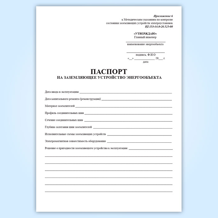 Паспорт на заземляющее устройство энергообъекта в Нижнекамске купить