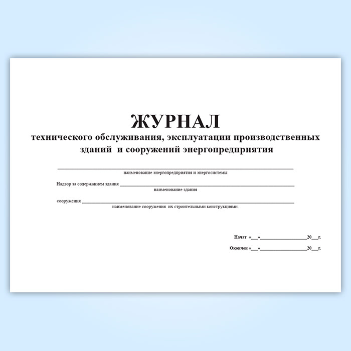 Журнал технического обслуживания, эксплуатации производственных зданий и сооружений энергопредприятия в Нижнекамске купить
