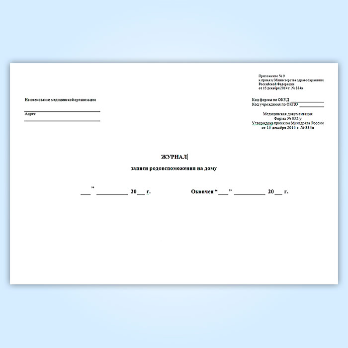 Журнал записи родовспоможения на дому (форма 032/у) в Нижнекамске купить