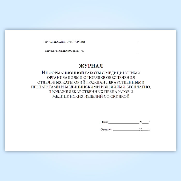 Журнал информационной работы с медицинскими организациями о порядке обеспечения отдельных категорий граждан лекарственными препаратами и медицинскими изделиями бесплатно, продаже лекарственных препаратов и медицинских изделий со скидкой в Нижнекамске купить