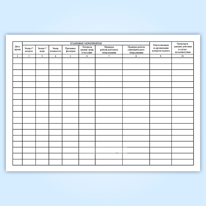 Журнал плановых мероприятий по бассейну в Нижнекамске купить