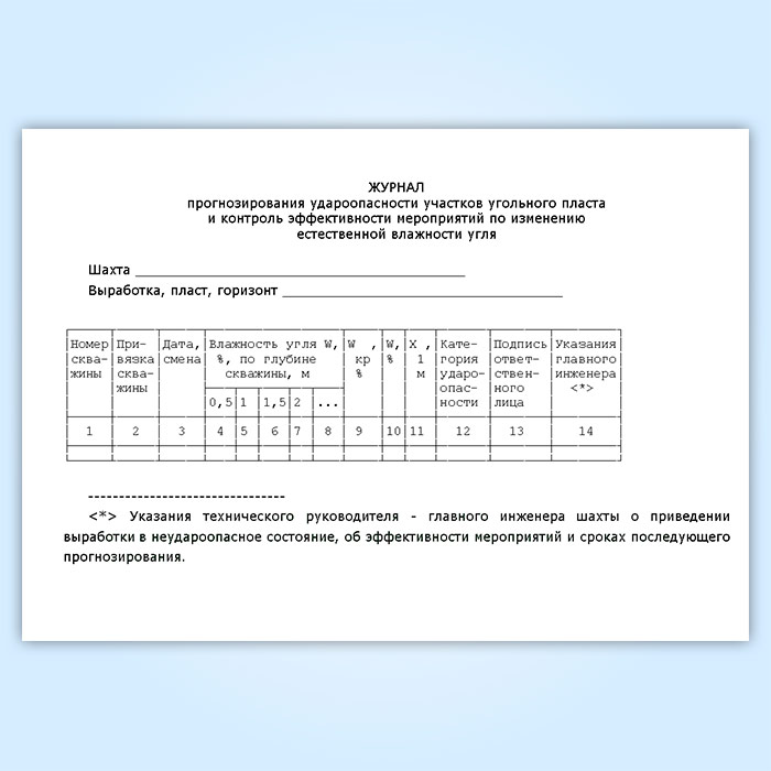 Журнал прогнозирования удароопасности участков угольного пласта и контроля эффективности мероприятий по изменению естественной влажности угля в Нижнекамске купить