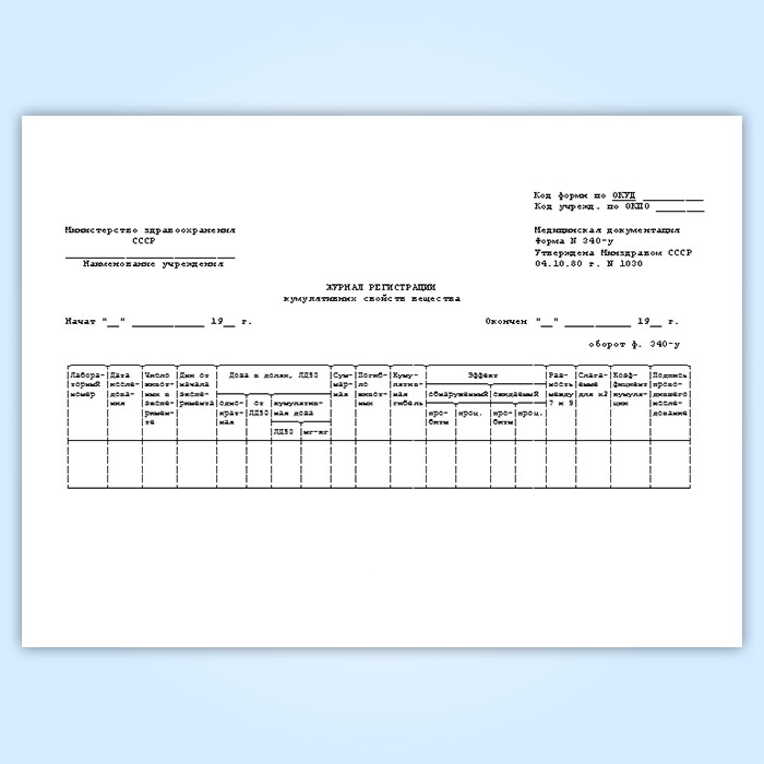 Журнал регистрации кумулятивных свойств вещества (форма № 340-у) в Нижнекамске купить