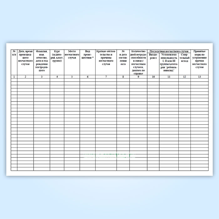 Журнал регистрации несчастных случаев с обучающимися в Нижнекамске купить