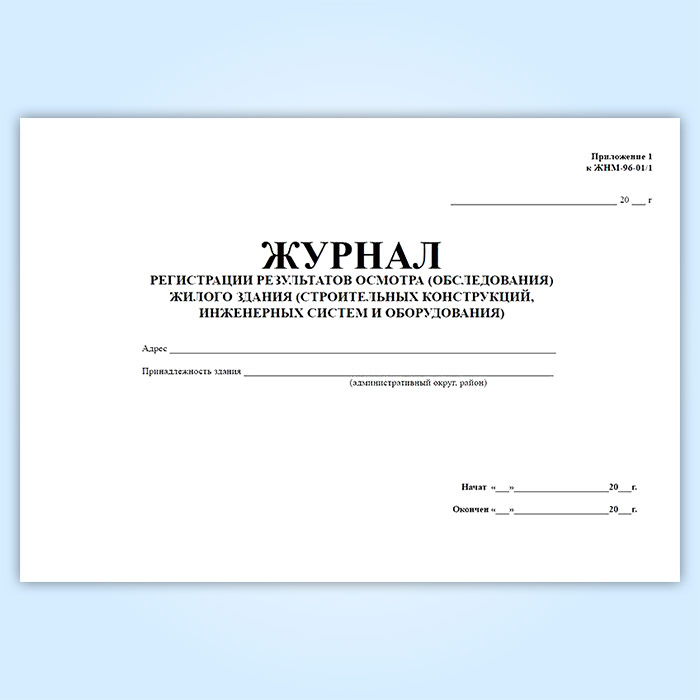 Журнал регистрации результатов осмотра (обследования) жилого здания (строительных конструкций, инженерных систем и оборудования). (Приложение к форме ЖНМ-96-01/1) в Нижнекамске купить
