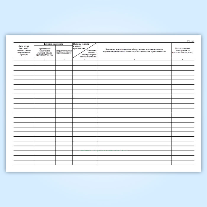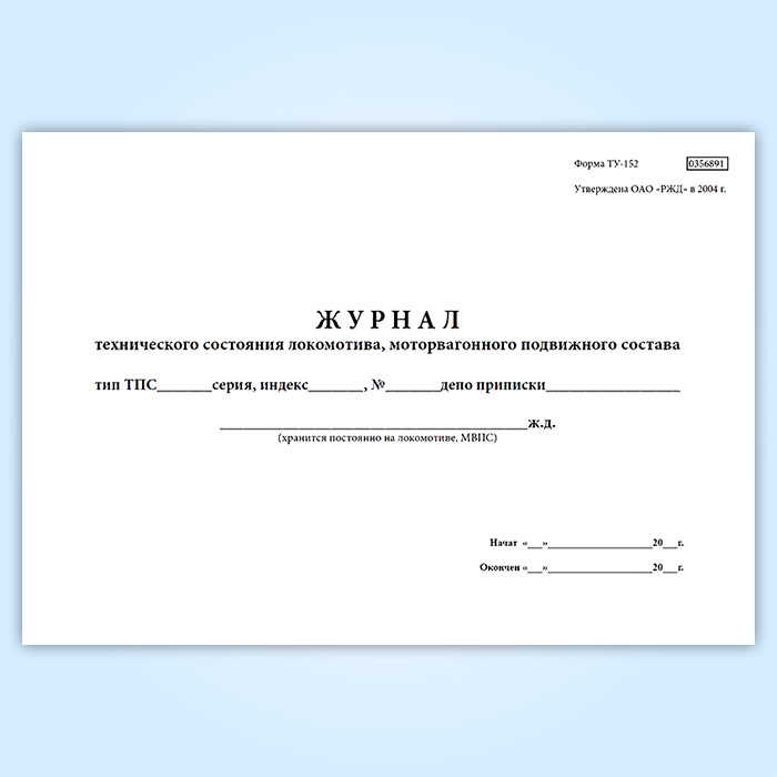 Журнал технического состояния локомотива, моторвагонного подвижного состава (форма № ТУ-152) в Нижнекамске купить