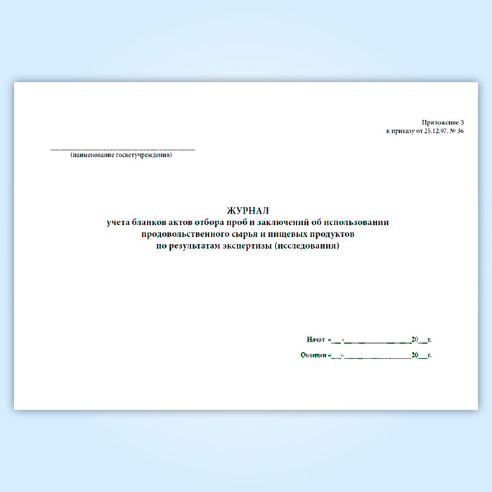 Журнал учета бланков отбора проб и заключений об использовании продовольственного сырья и пищевых продуктов в Нижнекамске купить