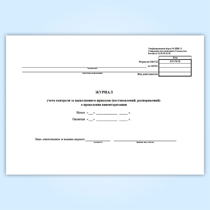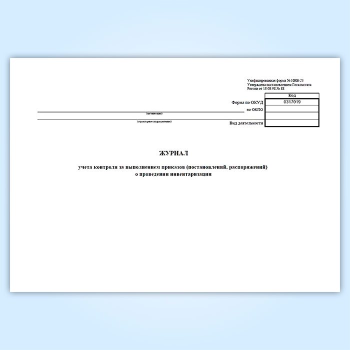 Журнал учета контроля за выполнением приказов (постановлений, распоряжений) о проведении инвентаризации (унифицированная форма ИНВ-23) в Нижнекамске купить