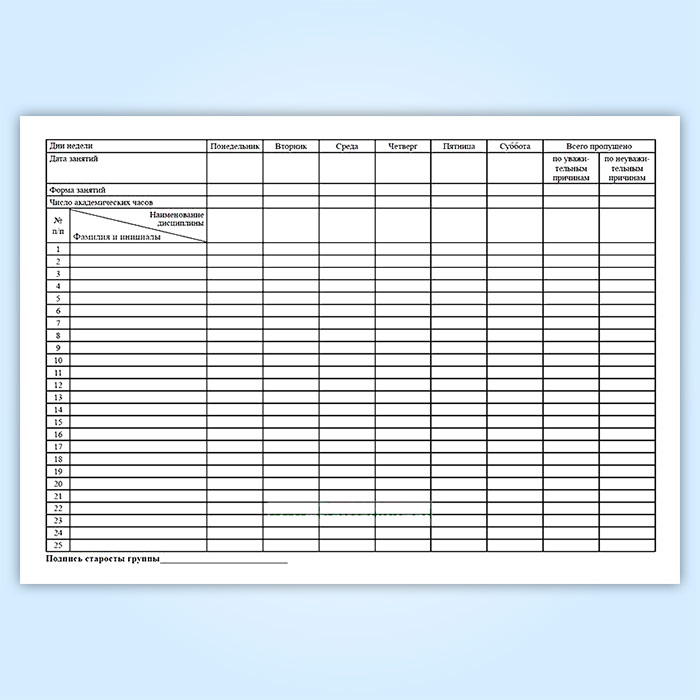 Журнал учета посещения занятий студентами в Нижнекамске купить