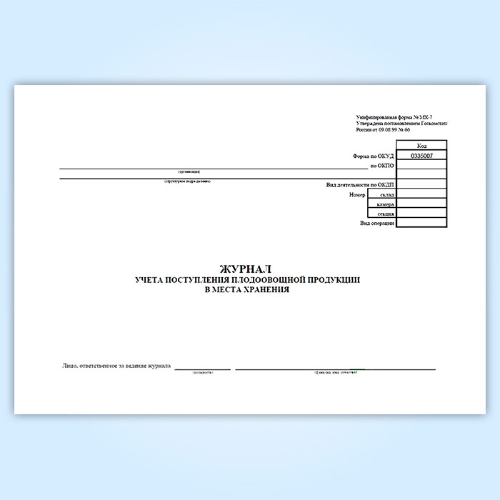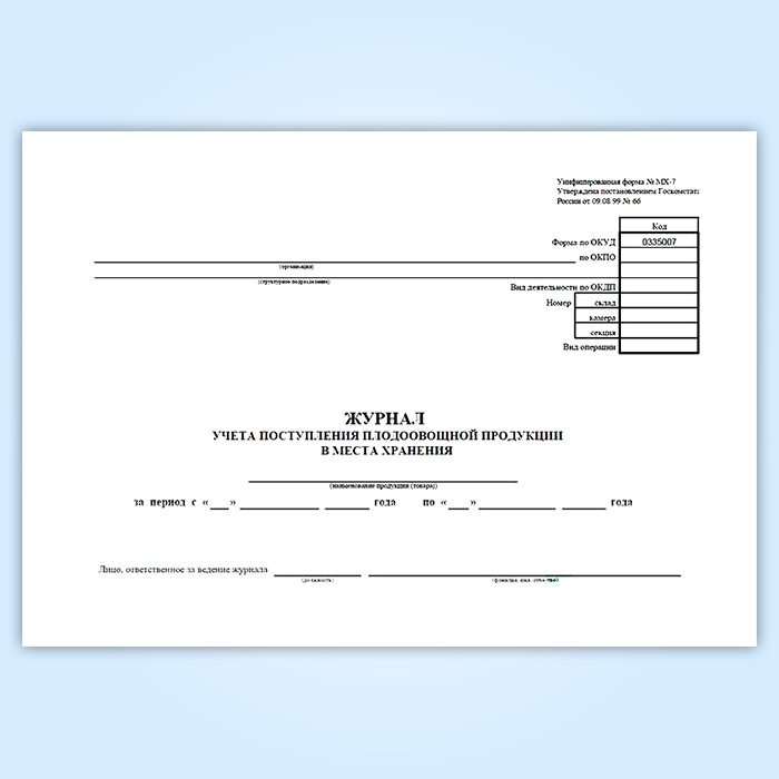 Журнал учета поступления плодоовощной продукции в места хранения (форма МХ-7) в Нижнекамске купить