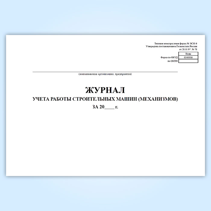 Журнал учета работы строительных машин (механизмов) (форма ЭСМ-6) в Нижнекамске купить