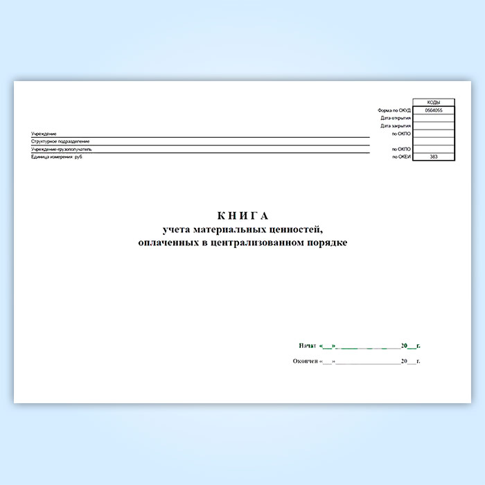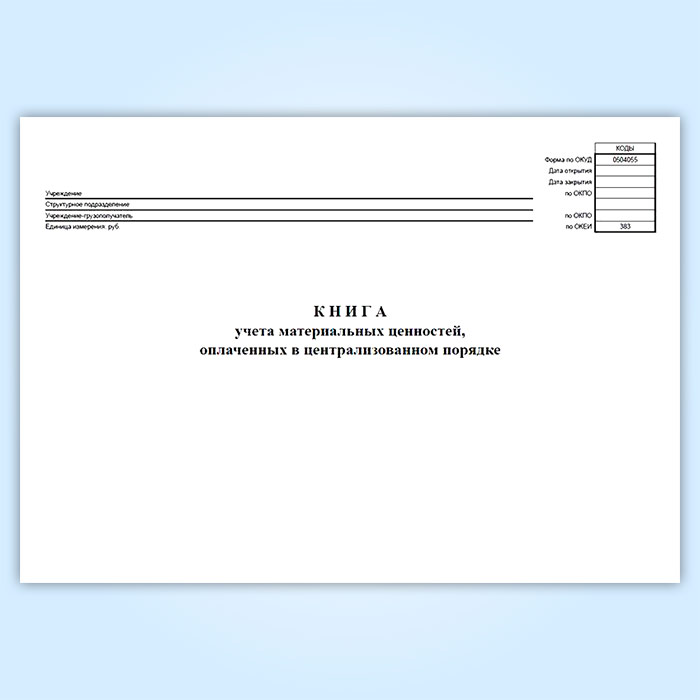 Книга учета материальных ценностей, оплаченных в централизованном порядке (код формы 0504055) в Нижнекамске купить